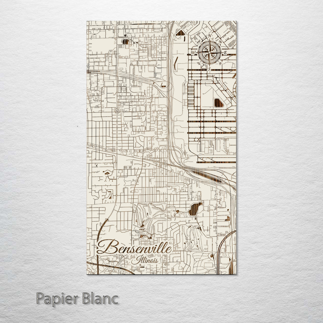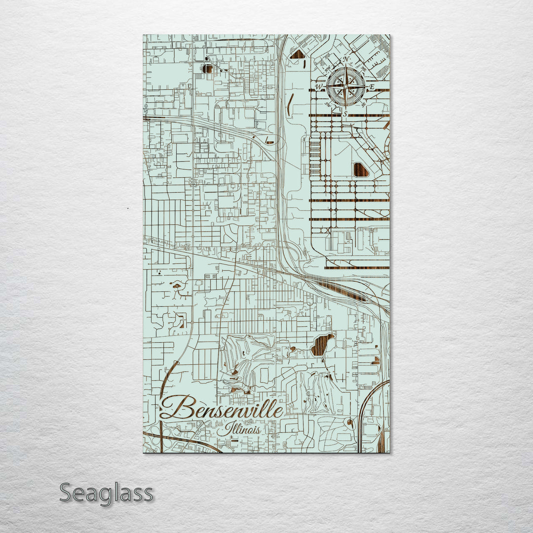 Bensenville, Illinois Street Map Wood Engraved Maps, Wall Art Wood